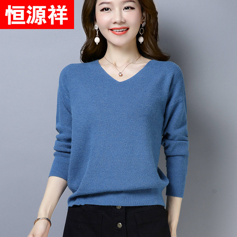 恒源祥羊毛衫女内搭毛衣春秋套头上衣宽松V领长袖纯色打底针织衫 | |